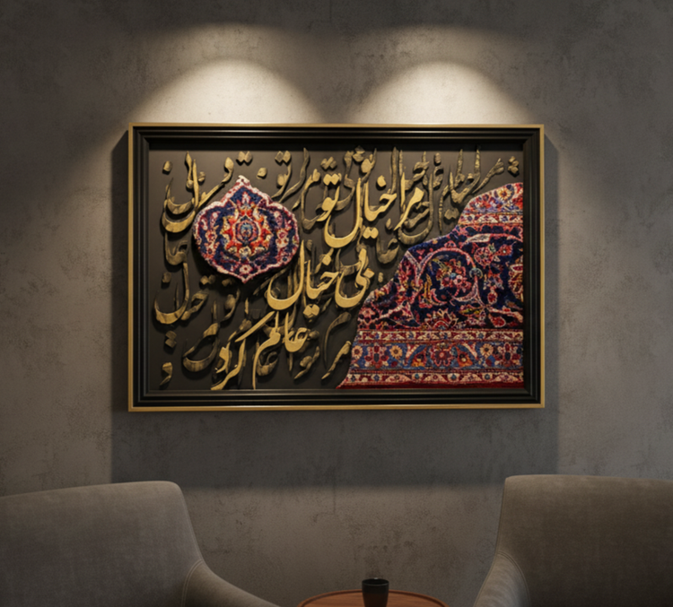 تابلوی کالیگرافی مدرن با تلفیق فرش دستباف ایرانی