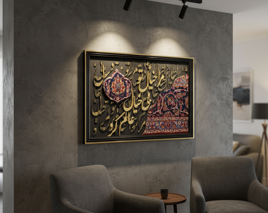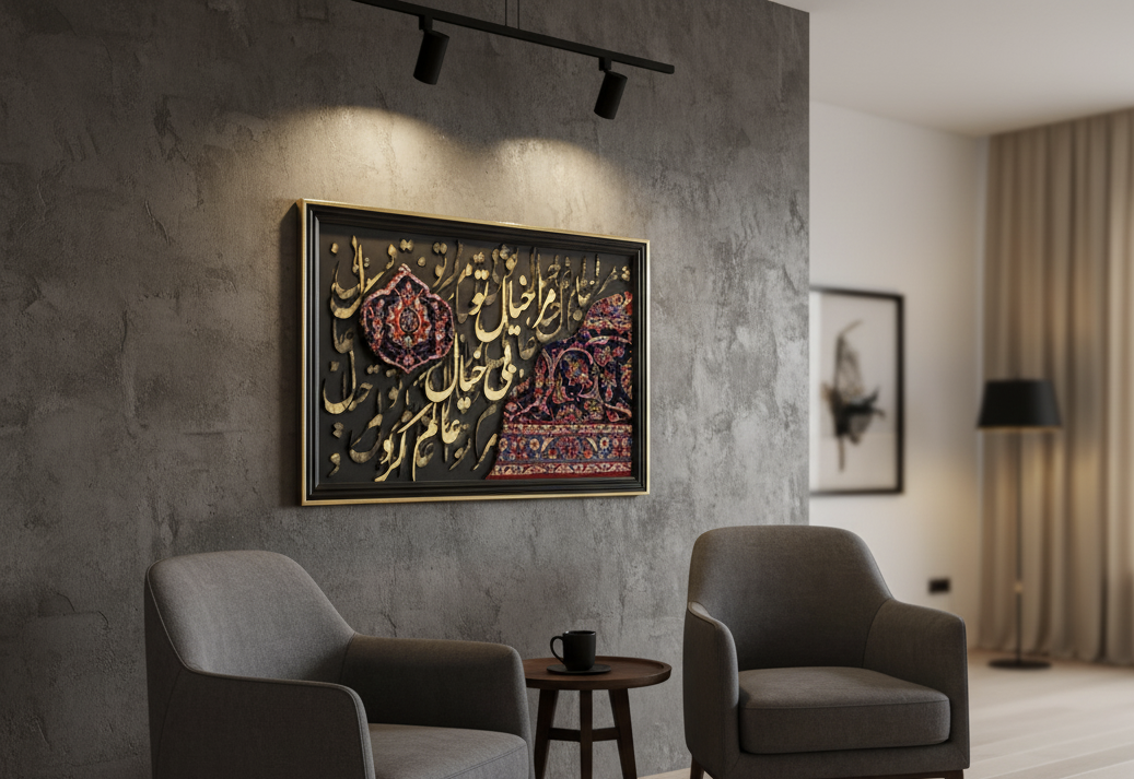 تابلوی کالیگرافی مدرن با تلفیق فرش دستباف ایرانی